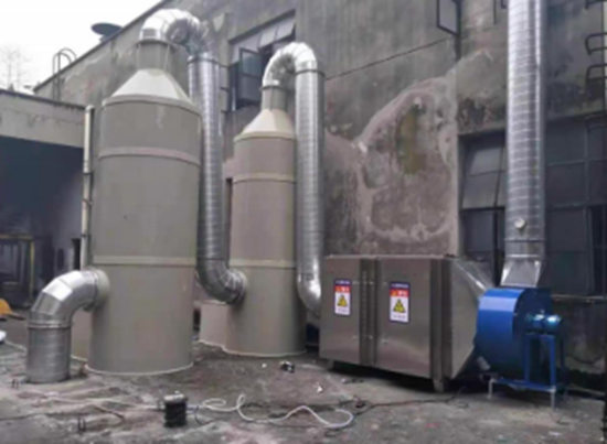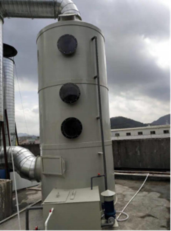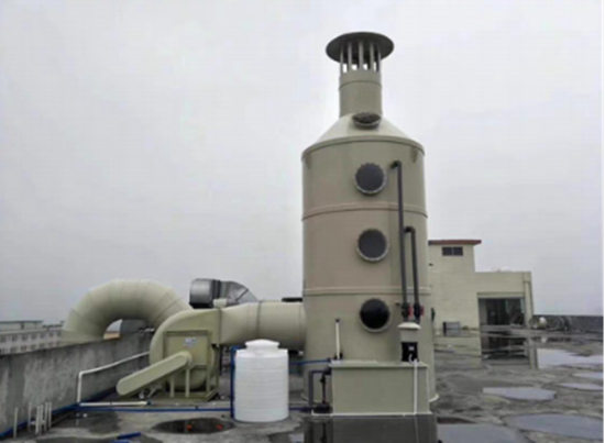 當(dāng)混合氣從洗滌塔底部通入洗滌塔,由于塔板間存在產(chǎn)物組分液體,產(chǎn)物組分氣體液化的同時蒸發(fā)部分,而雜質(zhì)由于不能被液化或凝固,當(dāng)通過有液體存在的塔板時將會被產(chǎn)親物組分液體固定下來,產(chǎn)生滌作用,洗滌塔就是根據(jù)這一原理設(shè)計和制造的。洗滌塔利用氣體與液體間的接觸,將氣體中的污染物傳送到液體中,然后再將清潔氣體與被污染的液體分離,達到清凈空氣的目的。廢氣經(jīng)由填充式酸霧洗滌塔,采用氣液逆向吸收方式處理,即液體自塔頂向下以霧狀(或小液滴)噴撤而下。廢氣則由塔體(逆向流)達到氣液接觸之目的。此處理方可冷卻廢氣、調(diào)理氣體及去除顆粒。再經(jīng)過除霧段處理后,排入大氣中。
